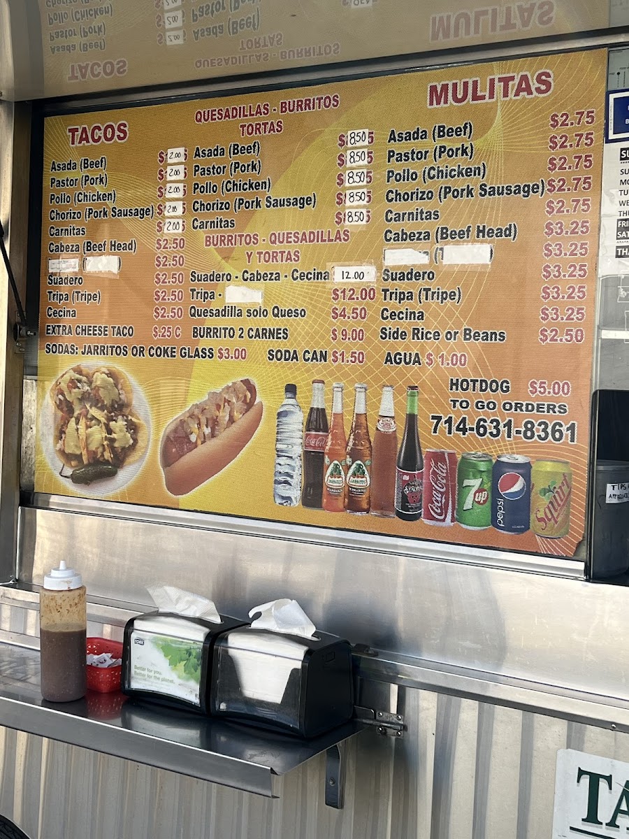 The menu at Tacos Diaz Food Truck delivers a satisfying variety of classic Mexican street-food staples, each offering bold, authentic flavors. The Mulitas-available with Asada, Pastor, or Tripa (Tripe/Cecina)-stand out as hearty handheld stacks, especially when paired with a Side Rice or Beans, making them feel like a complete meal. Their Tacos, offered with Suadero, Tripa, Cecina/Asada, or Pastor, capture that true street taco essence, each protein bringing its own texture and richness, from the tender suadero to the crispy tripa. For those wanting something beyond the basics, the Others section adds welcome variety: flavorful Suadero or Tripa servings, the gooey comfort of the Quesadilla Solo Queso/Extra Cheese Taco, and the substantial Burrito 2 Carnes, which lets you enjoy two meats at once. Overall, the menu balances simplicity and depth, showcasing quality ingredients, well-seasoned meats, and options that satisfy both casual snackers and hungry diners.